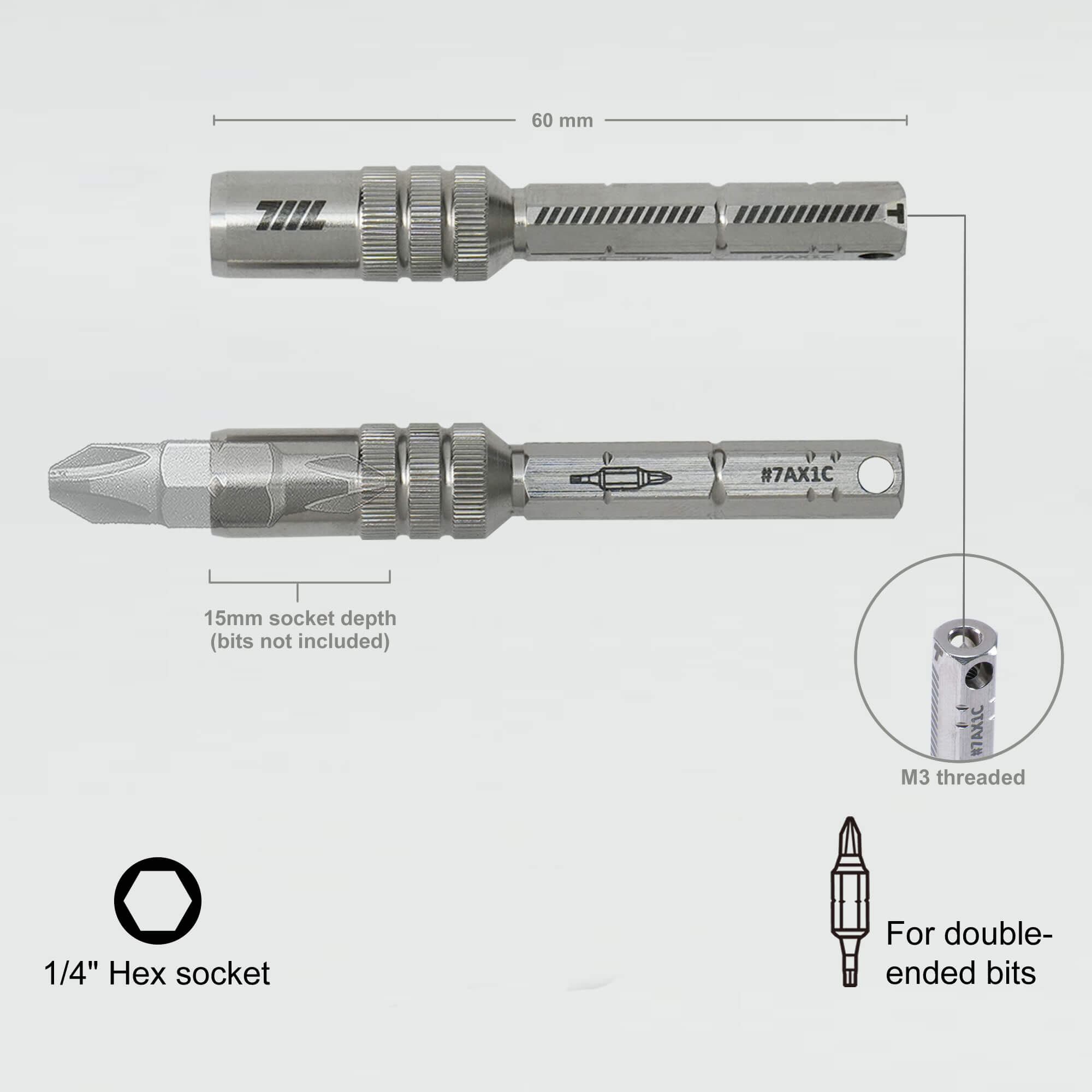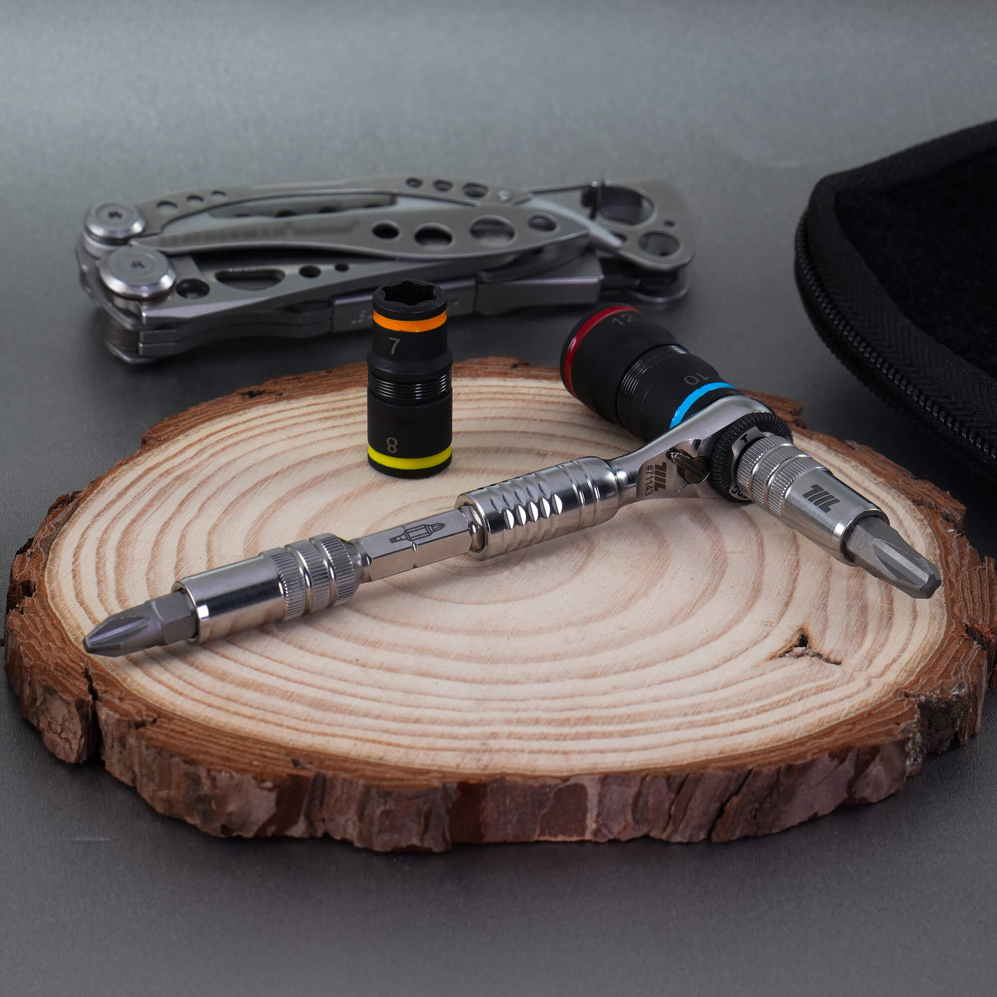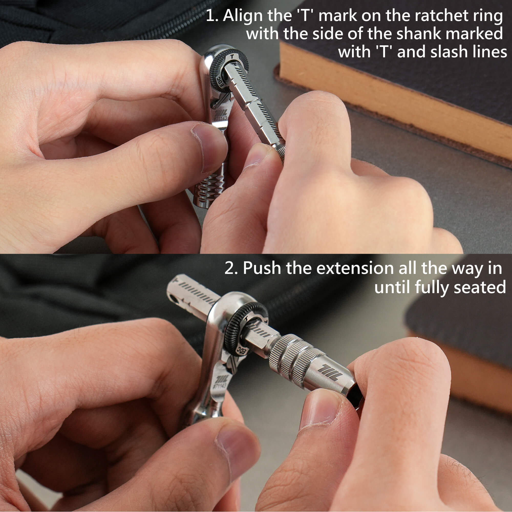 ended 1/4″ bits. The 3-in-1 design converts between extension, T-handle, and L-