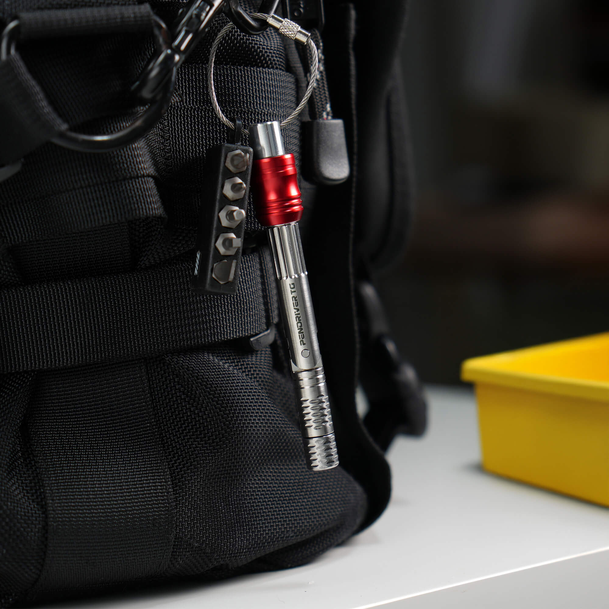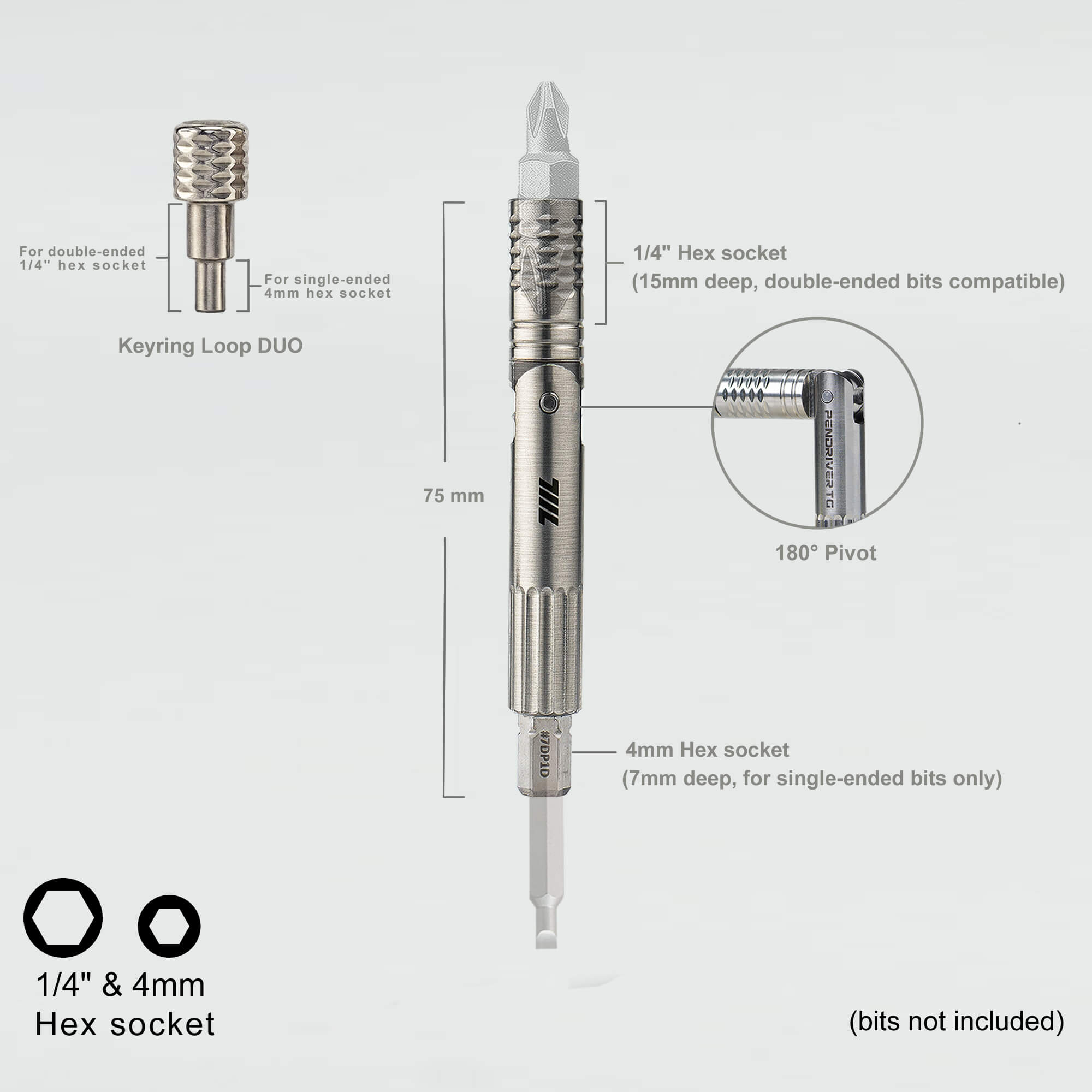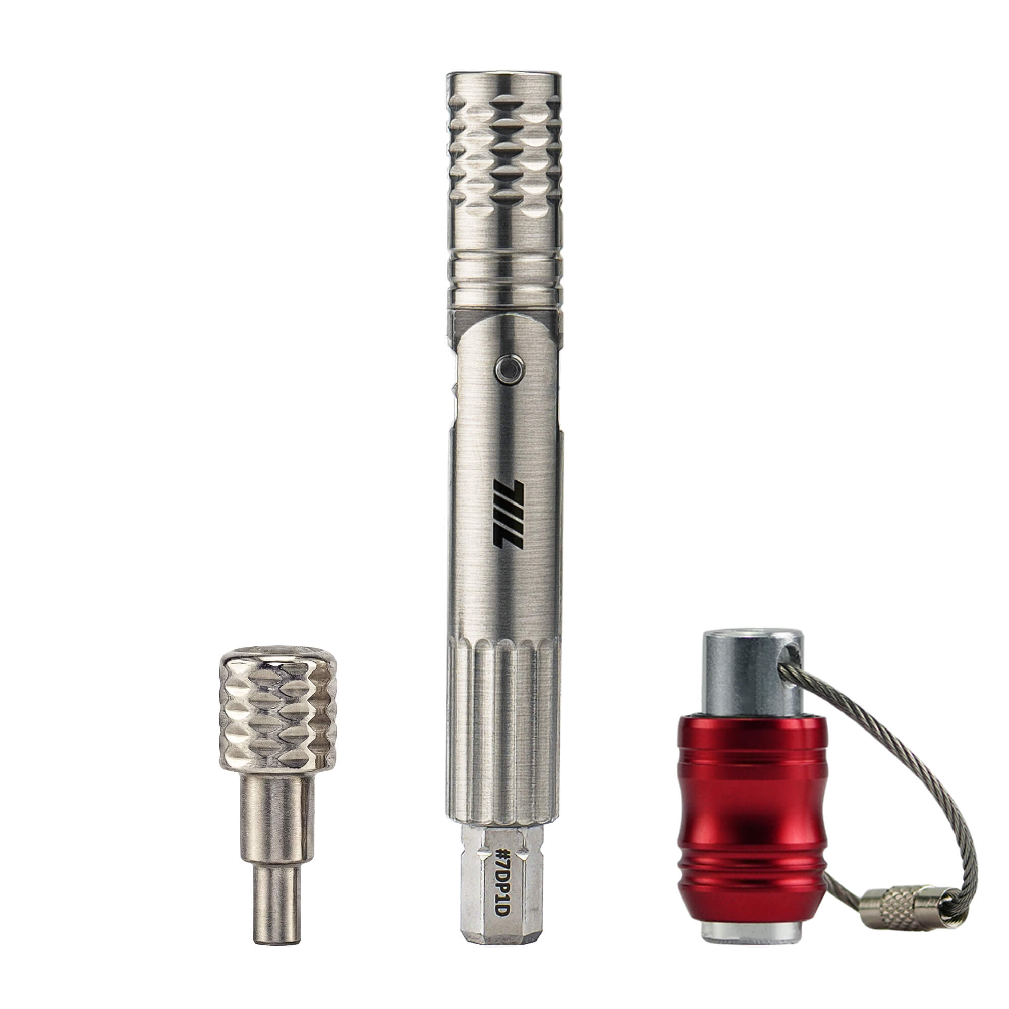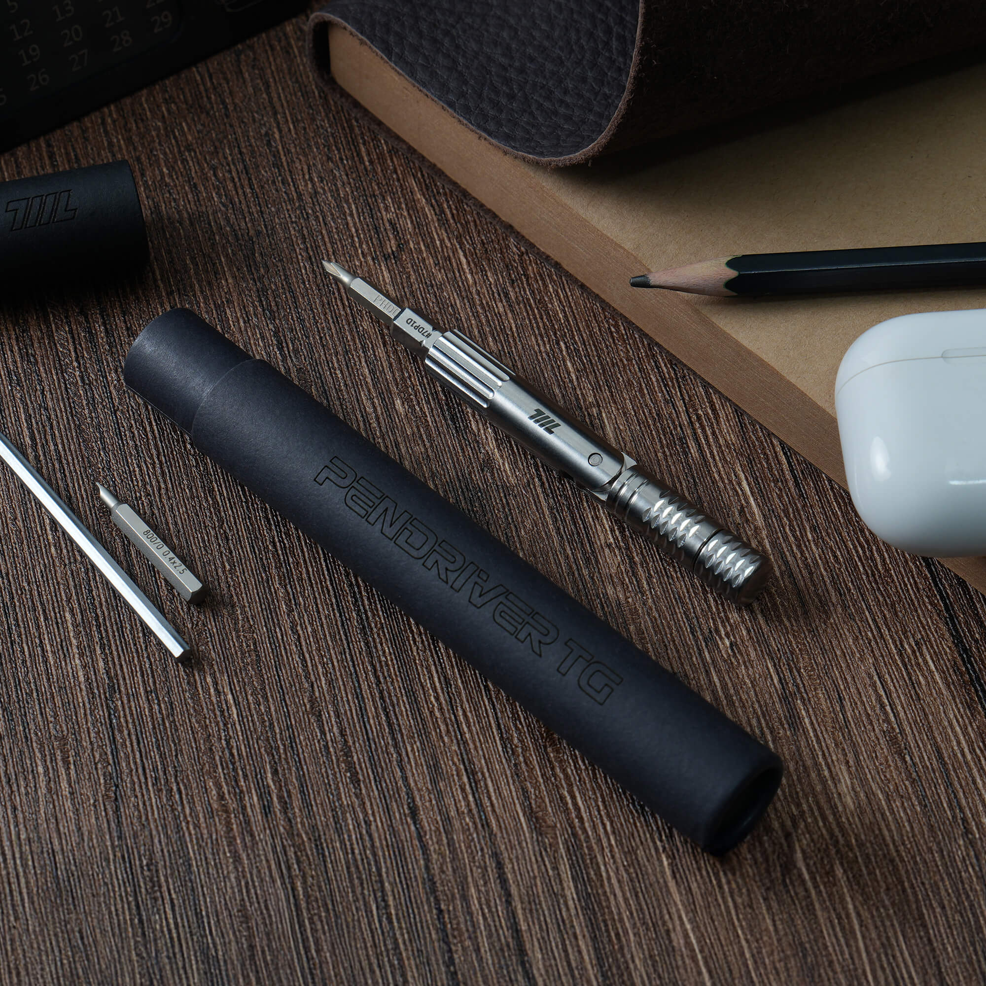 At just 43 grams, the 711L Pen Driver TG is a pocket-sized screwdriver that accepts both 4mm precision bits and 1/4″ hex bits. The pen grip handles quick tasks while the fold-out L-handle provides leverage for stubborn screws. Built from high-quality stainless steel with 711L’s signature diamond-cut pattern for a solid feel, corrosion-free durability, and premium aesthetics.