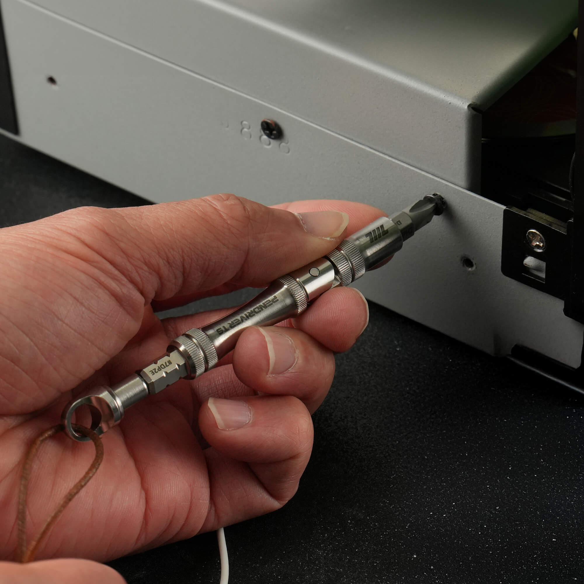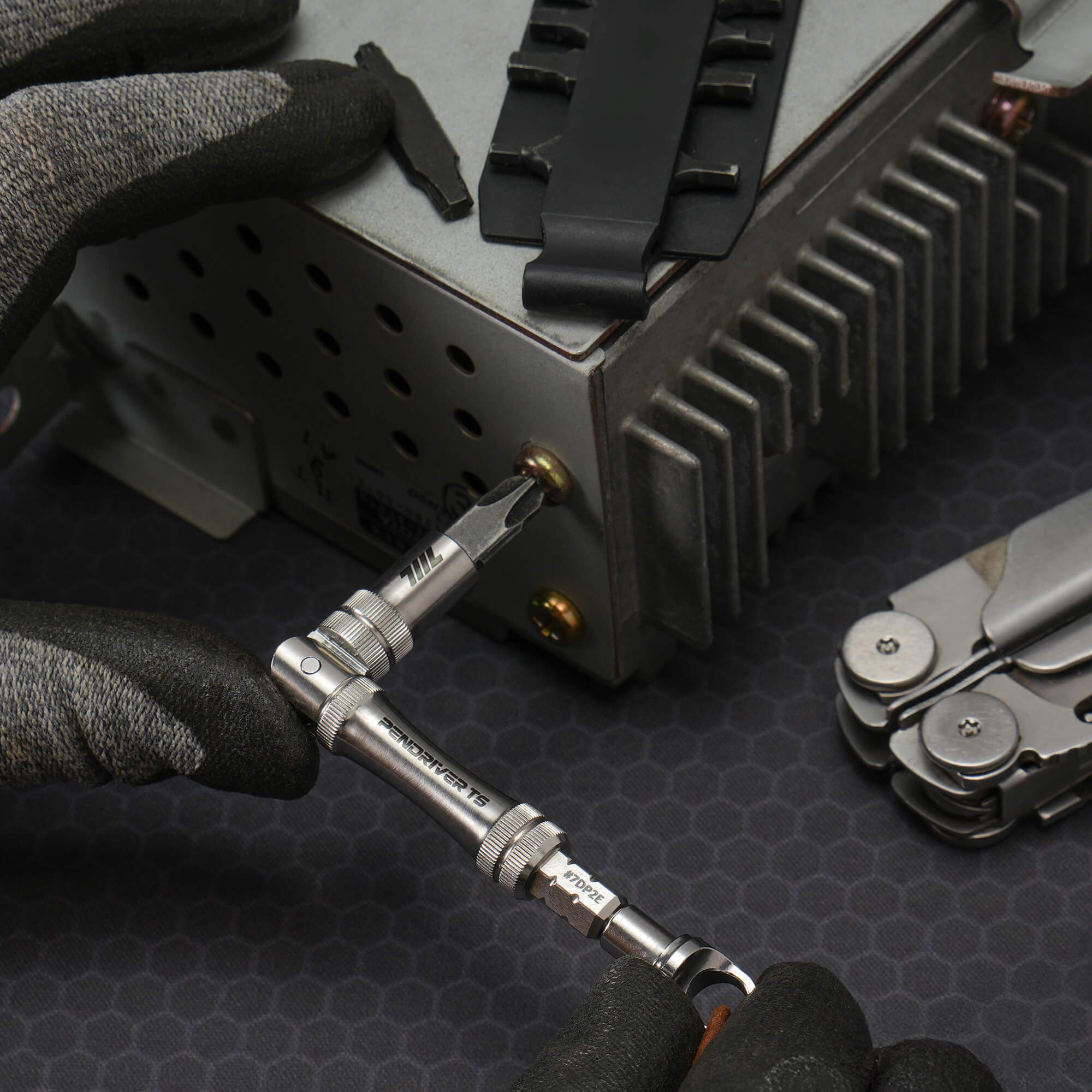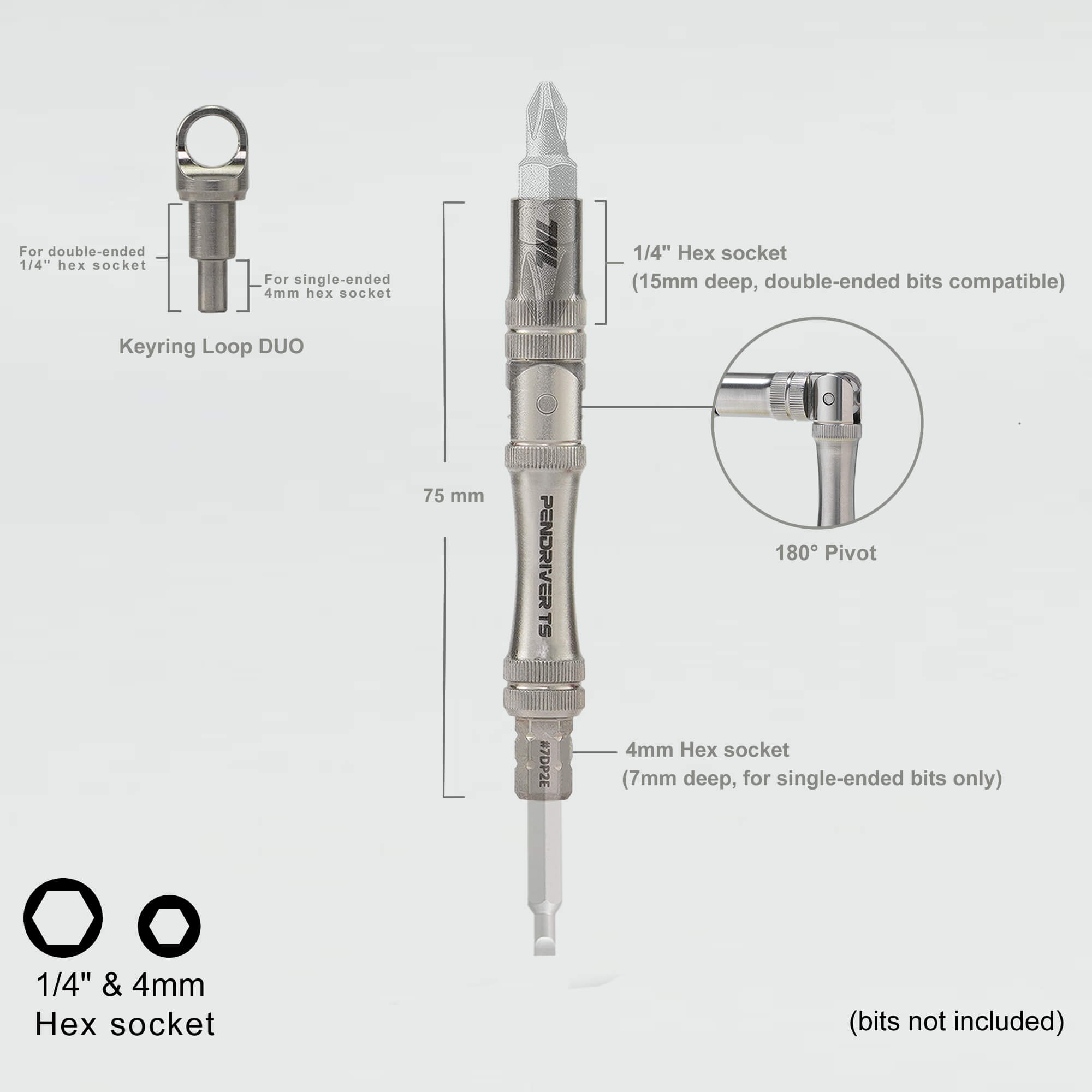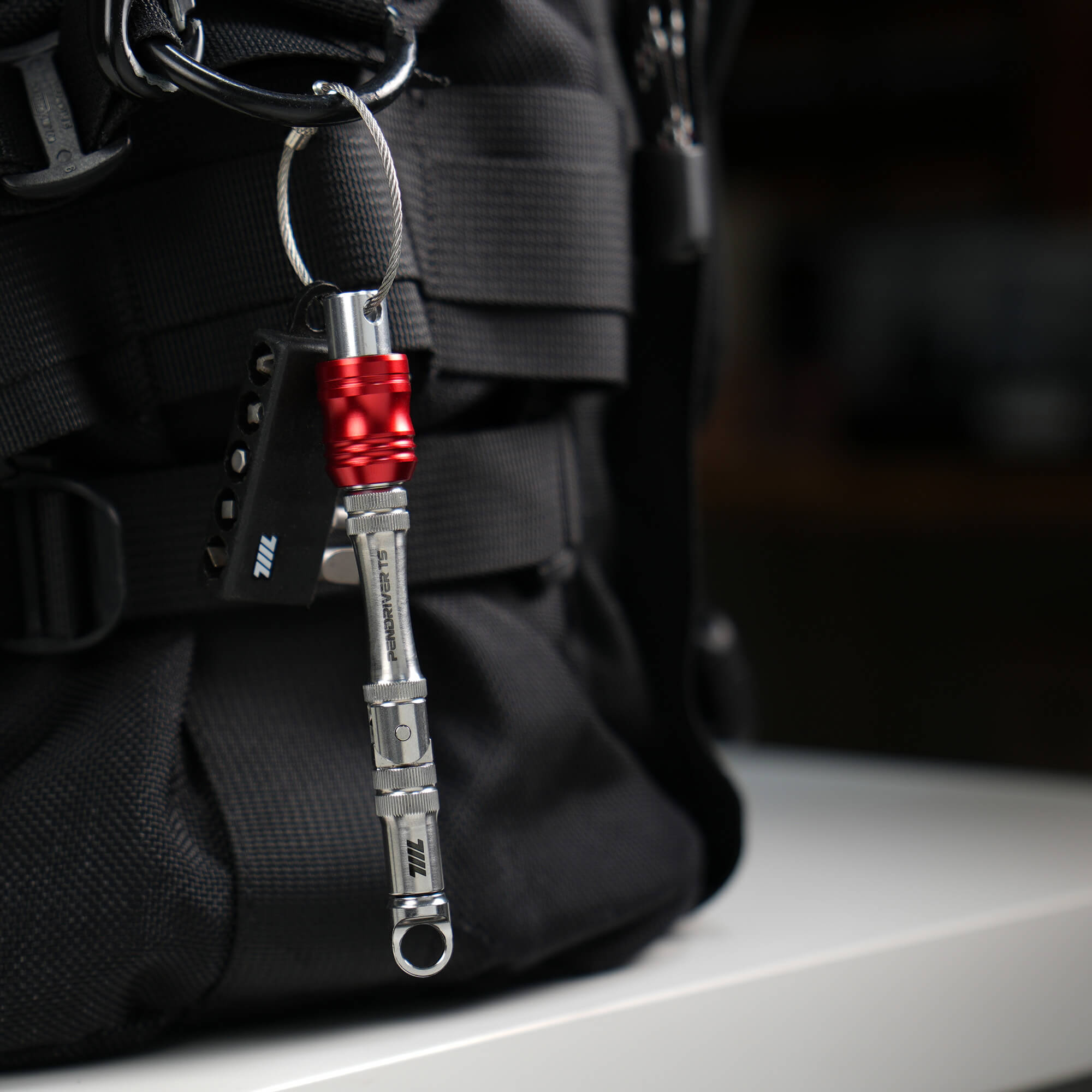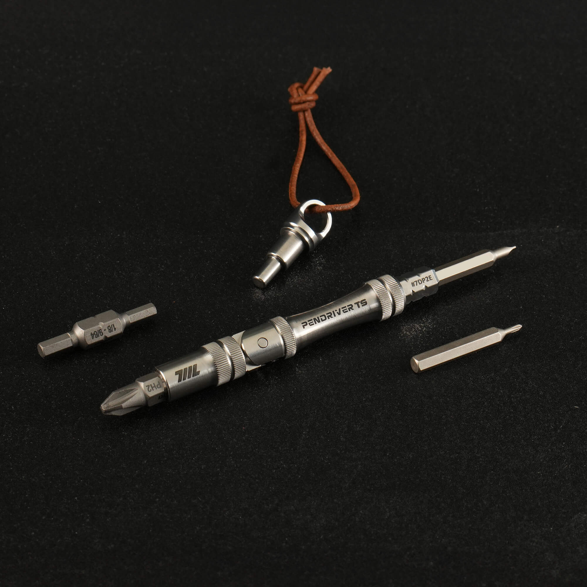 At just 34 grams, the 711L Pen Driver TS is a pocket-sized screwdriver that accepts both 4mm precision bits and 1/4″ hex bits. The pen grip handles quick tasks while the fold-out L-handle provides leverage for stubborn screws. Precision-machined from stainless steel with a smooth, minimalist finish and integrated lanyard-hole cap for easy attachment.
