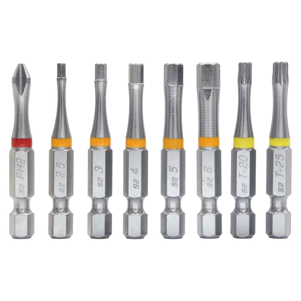 8 PCS 50mm 1/4″ Hex Bits – Color-Coded S2 Steel Philips, Torx, Hex Screwdriver Tips – EDC Tool Set for Versatile Applications