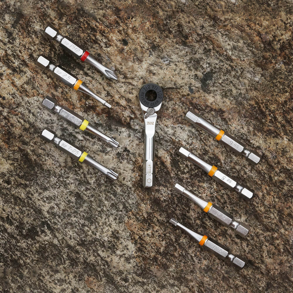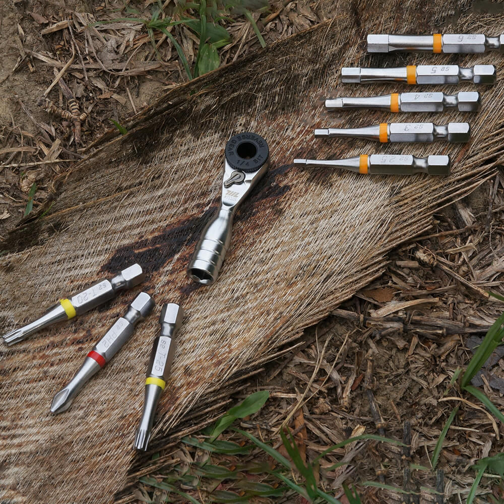 One of the strengths of 711L EDC designs is the wealth of possibilities to connect our tools together to customize torque and create your own bespoke set of tools for any particular job. You can fit our 1/4” ratchet into our Y-driver, and load out the Y-driver with any 1/4” bit that suits your current project. You can fit our ratchet into the Lollipop for increased mechanical advantage and firmer grip, and our range of magnets automatically adjust to be slotted onto any tool tip.
