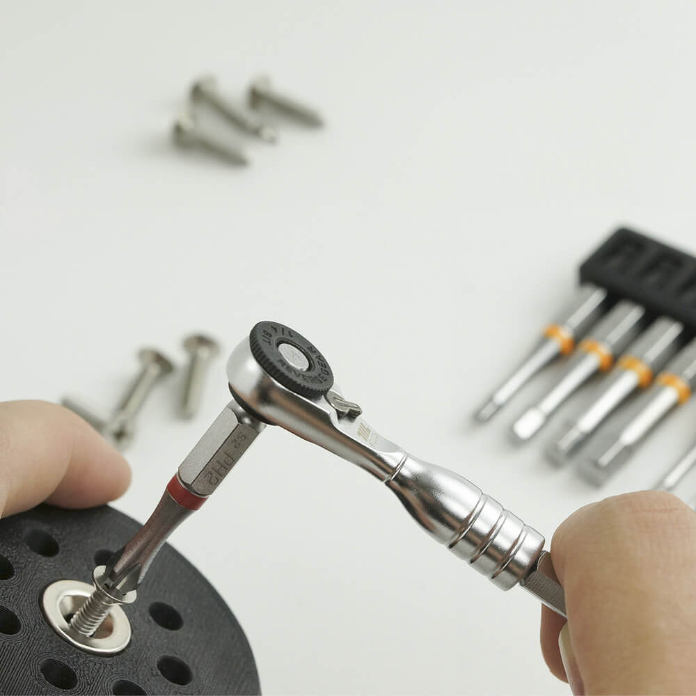 One of the strengths of 711L EDC designs is the wealth of possibilities to connect our tools together to customize torque and create your own bespoke set of tools for any particular job. You can fit our 1/4” ratchet into our Y-driver, and load out the Y-driver with any 1/4” bit that suits your current project. You can fit our ratchet into the Lollipop for increased mechanical advantage and firmer grip, and our range of magnets automatically adjust to be slotted onto any tool tip.