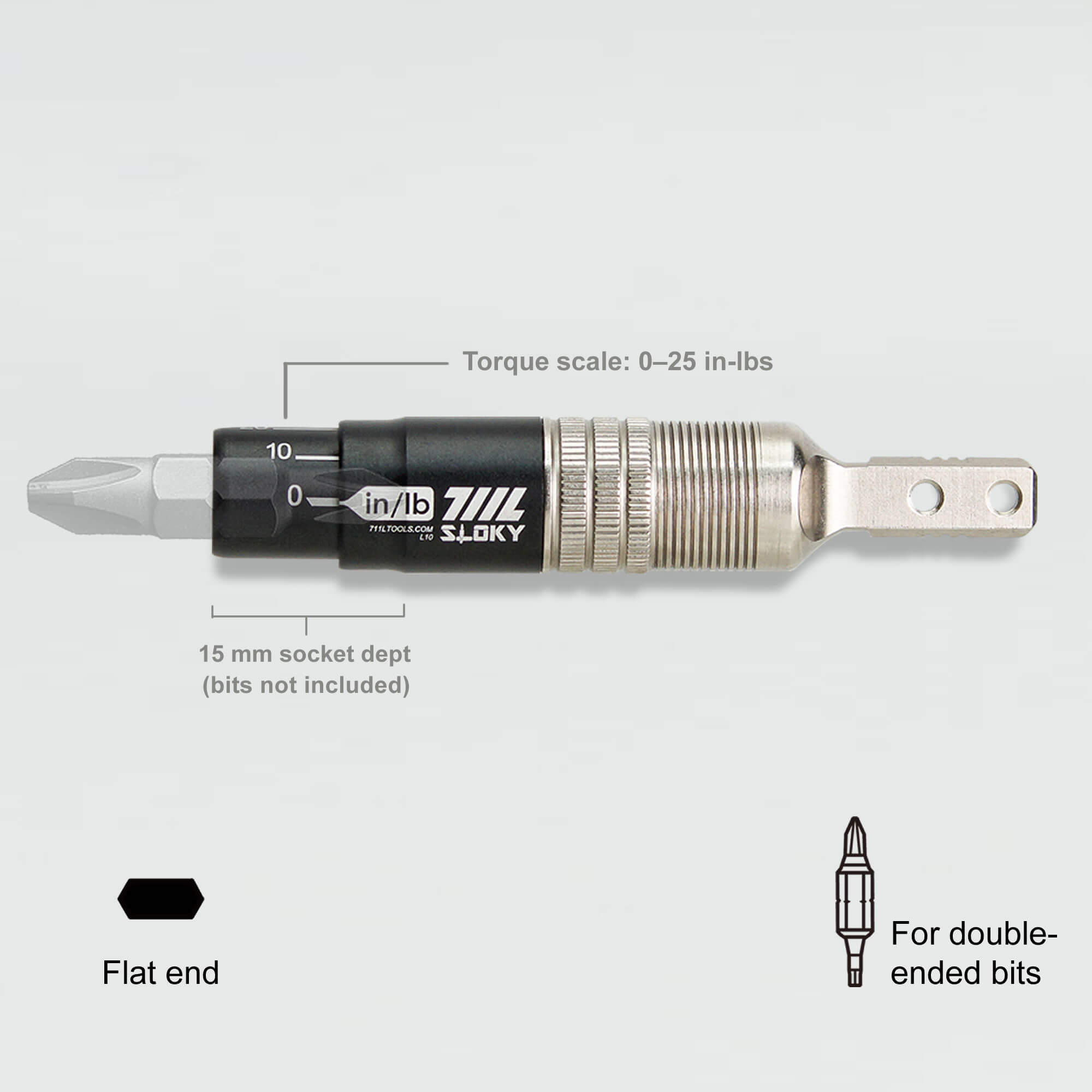 The 711L EDC Torque Driver FL transforms your multi-tool into a precision torque wrench with 0-25 inch-lbs range. Fully compatible with Leatherman’s flat bit adapter system for firearms, bicycles, knives, drones, and electronics.